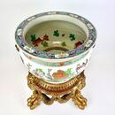A superb 19thC Samson Paris famille rose fish-bowl/ jardinière on a Louis XVI style giltwood base.
