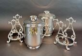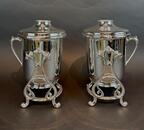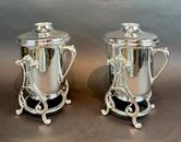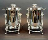 A pair of 19th century silver plated wine coolers from Christofle with coats of arms. Liners in lead. Perfect condition! Signed Christofle. Paris c. 1850s. Dimensions: H30 x W14 x D22.5 cm. H11.81 x W5.51 x D8.86 inch.