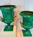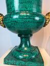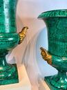Pair of large mid-20th-century bronze Medici vases with malachite decoration