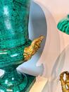 Pair of large mid-20th-century bronze Medici vases with malachite decoration and gilded bronze handles. Italy c. 1950s. Dimensions: H78 by 60 cm. H30.71 by 23.62 inch.